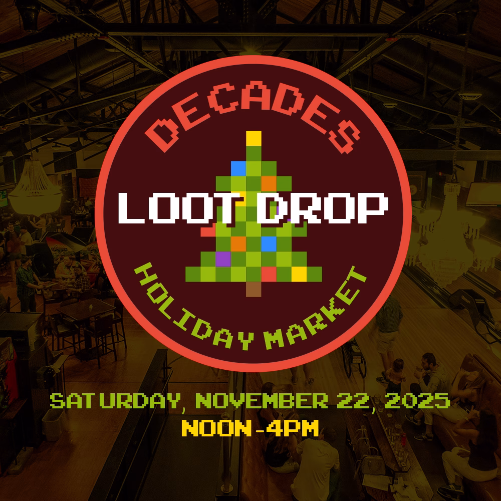We’re elevating the gifting game at our Decades Loot Drop Holiday Market on Saturday, November 22 from Noon-4pm! The holiday market will feature 10 curated local vendors for you to shop for gifts (or buy something for yourself – we don’t judge). In video games, a loot drop consists of in-game items or rewards that players receive after defeating enemies or completing tasks! We thought that was the perfect title for our first-ever holiday market where you can shop and support local vendors while enjoying our retro arcade. Decades will be open for normal service as well so you can enjoy drinks and food as you sip & shop. Let’s gift + game! Participating Vendors: *Decades – gift cards, merch, collectible glasses *Just Press Play – video game merch, cards, collectibles *Lancaster Beard Co. – beard balm, beard oils, beard soaps *Mad Cap & Co. – Lancaster holiday gifts, collectibles *Mug Blossoms by Jenny – giftable themed mug creations *Lookee Hear Sound and Vision Boutique – vinyl records and more *Sweetish Candy – a variety of sweets and treats *JAKpot Ceramics – ceramic bowls, tableware, and more *Hangin’ with Grace – macrame hangers, planters *HappySilence – jewelry and accessories *The Art Of Mitch Miller – illustrations, designs, prints