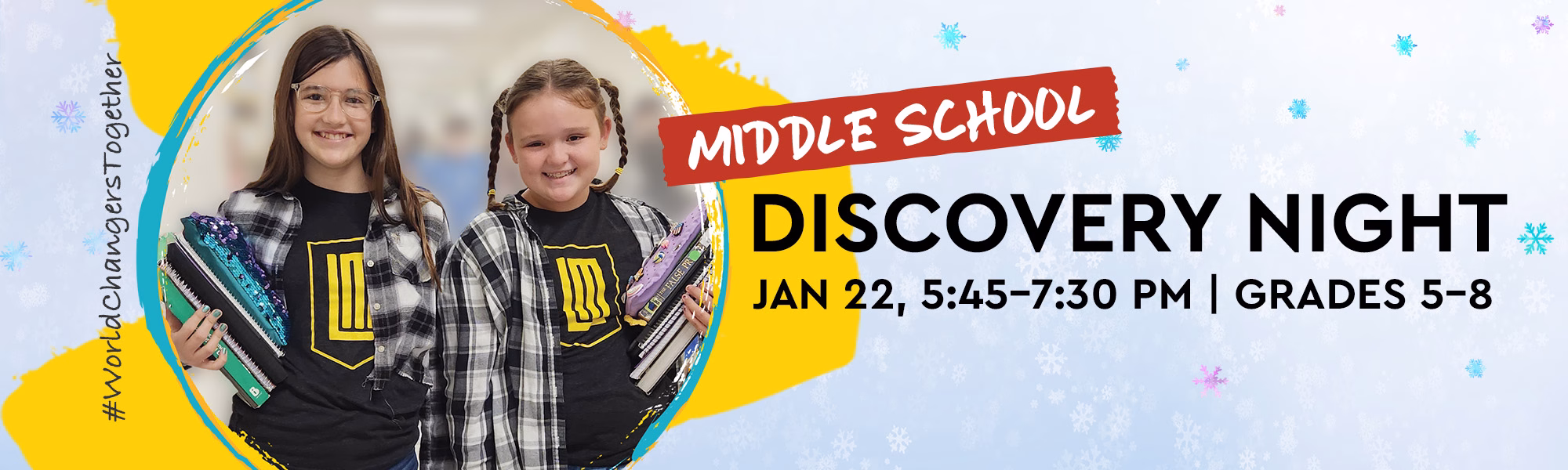 JOIN US FOR an upcoming open house! Lancaster Mennonite School will be holding a Middle School Discovery Night for incoming 5-8th graders on Thursday, January 22, 2026 from 5:45 pm- 7:30 pm. Kick-off Meeting at 6 PM. Meet the teachers, tour the school, and discover our high-quality academics and Christ-centered learning community. A kick-off meeting will get things started at 6PM. There will be student projects on display, a hands-on activity, and of course great snacks! Interested students, parents and guardians for grades 5-8th are welcome to join us!